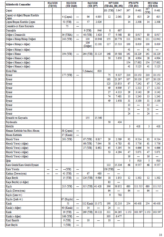 --KILLU: 107 hane,sahip oldukları koyun sayısı 23.085. 1536'dan sonra yoklar.